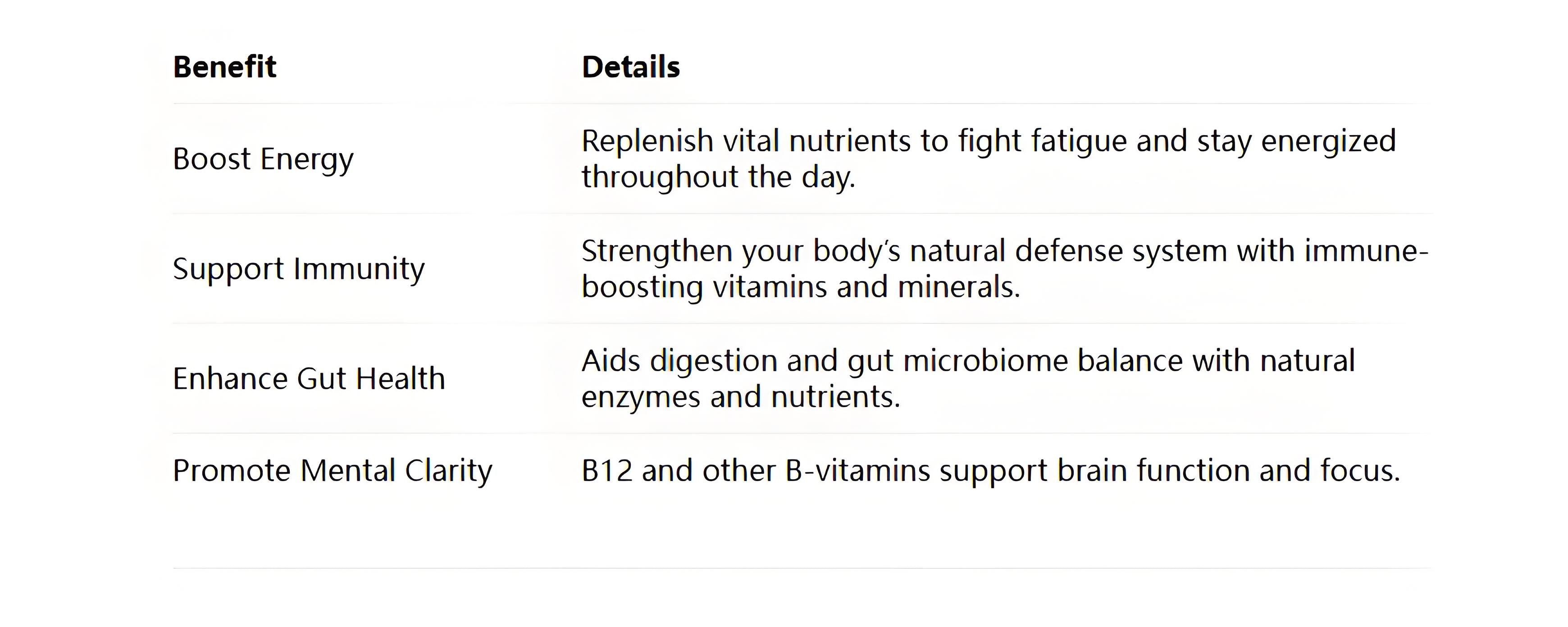 - Supports Immunity & Energy: Boost your immune system and sustain your energy levels naturally.